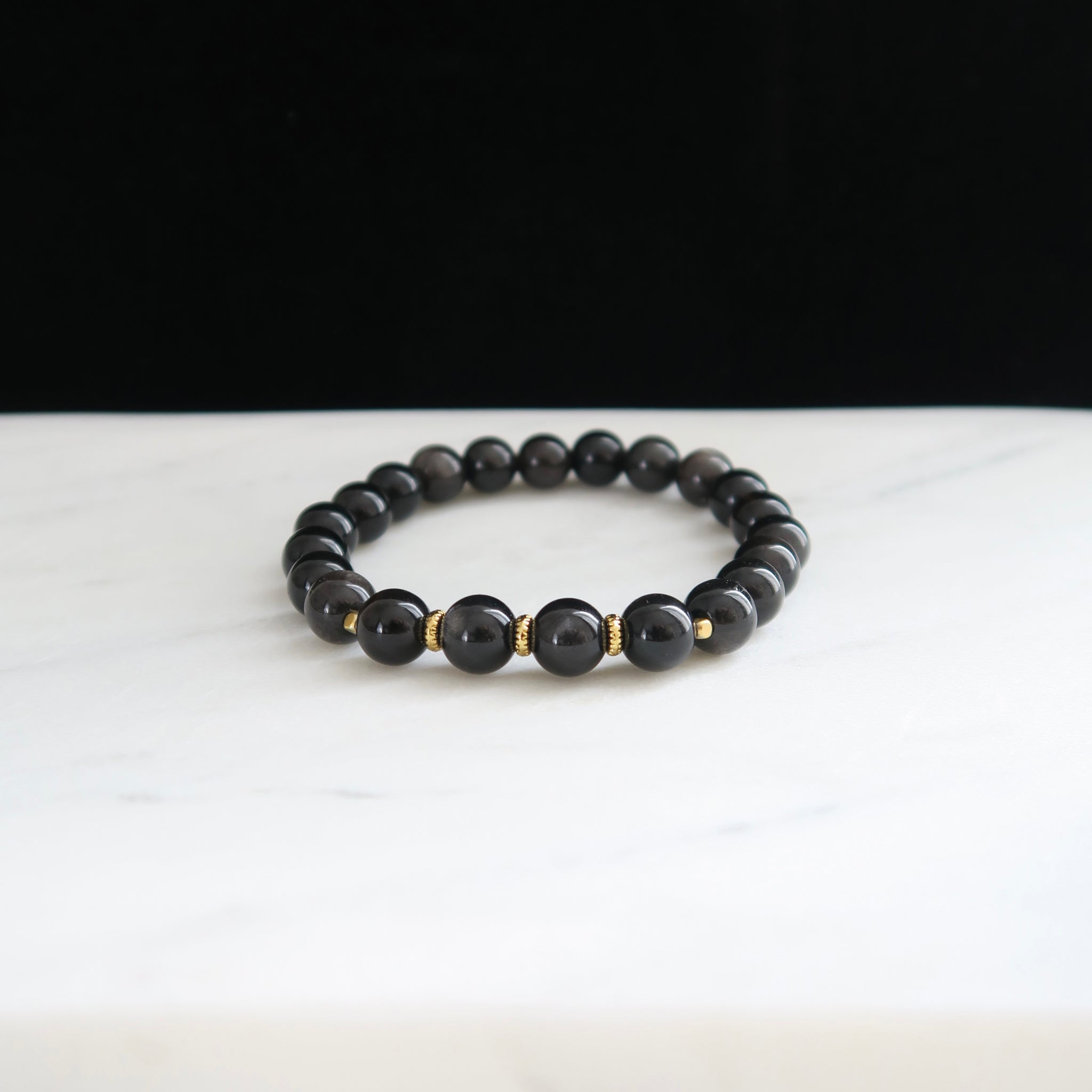 Le bracelet Nuit noire est fabriqué avec de magnifique pierres d'Obsidienne de 8mm.