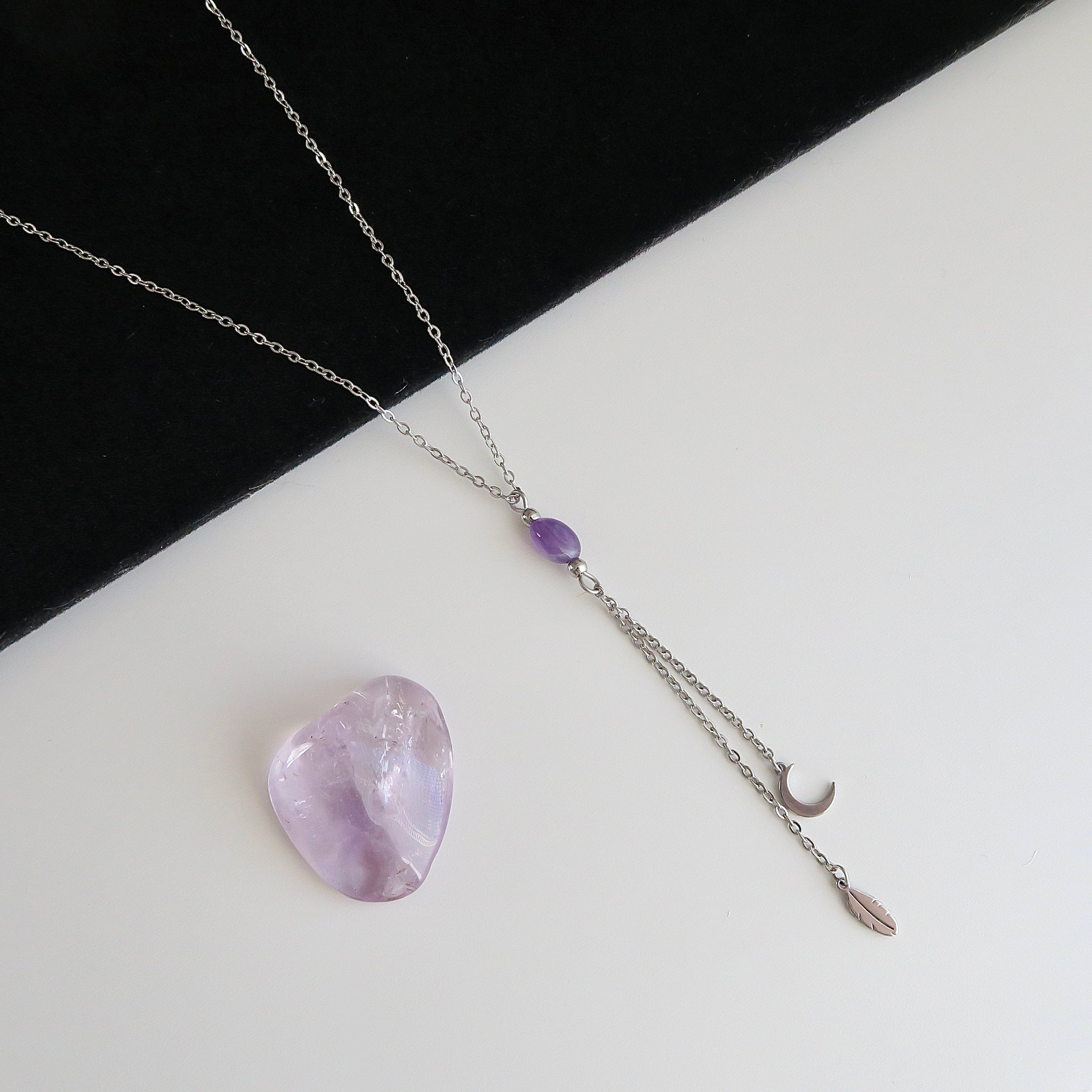 Matériaux en acier inoxydable avec une délicate pierre d'Améthyste.